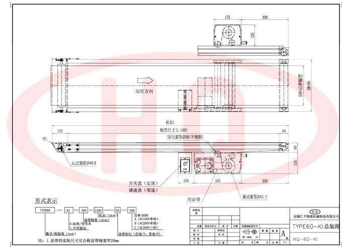 使用強度更高的60mm鋁合金型材支架,皮帶傳送、驅動。前端使用R3的端軸,形成刀口形狀,方便與其他輸送機對接,使更小物品輸送比較順暢。標準型一端為刀口式樣二側帶刀口式樣需要特別說明。。驅動部為鑄鋁一體成型,主動輪和從動輪為鋁同步輪,皮帶為樹脂同步帶,具有精度高、靜音性及耐久性,無油脂污染。