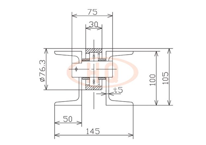 標準軸承流利條的滾輪使用標準的6206軸承,外徑φ76mm,支架使用100x50的槽鋼,承重量大。