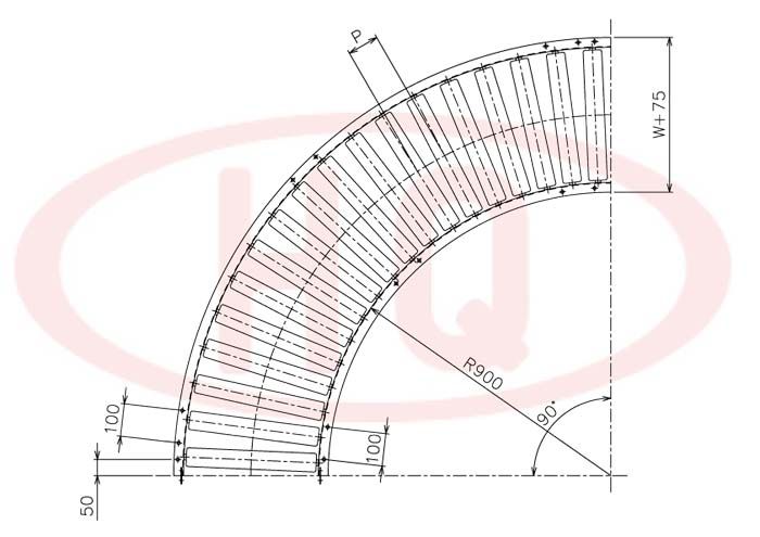 | 型 號(hào) | 滾筒外徑(φ)×壁厚(t) 軸承 | 軸外徑(φ)×壁厚(t) 加工 | 支架形狀I(lǐng)×K×t 輸送機(jī)高(H) | 機(jī) 長(zhǎng) L | 滾筒幅 寬 W | 滾筒間隔 P | 轉(zhuǎn)彎半徑 R | ||||||