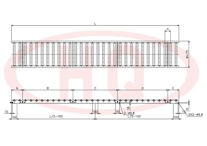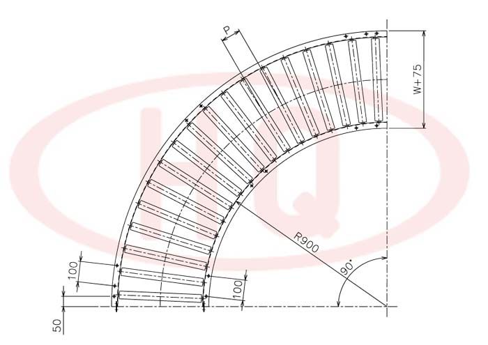 | 型 號 | 滾筒外徑(φ)×壁厚(t) 軸承 | 軸外徑(φ)×壁厚(t) 加工 | 支架形狀I(lǐng)×K×t 輸送機高(H) | 機 長 L | 滾筒幅 寬 W | 滾筒間隔 P | 轉(zhuǎn)彎半徑 R | |||||