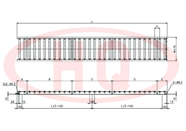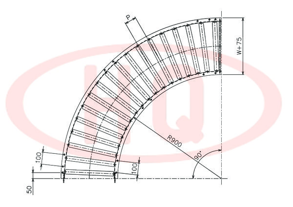 | 型 號(hào) | 滾筒外徑(φ)×壁厚(t) 軸承 | 軸外徑(φ)×壁厚(t) 加工 | 支架形狀I(lǐng)×K×t | 機(jī) 長(zhǎng) L | 滾筒幅寬 W | 滾筒間距 P | 轉(zhuǎn)彎半徑 R | |||||
